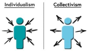 Individualistic cultures are cultures in which people define themselves as an individual and form loose ties with their groups. These cultures value autonomy and independence of the person, self-reliance, and creativity. Countries such as the United States, United Kingdom, and Australia are examples of individualistic cultures. In contrast, collectivistic cultures are cultures where people have stronger bonds to their groups and group membership forms a person’s self-identity. Asian countries such as China and Japan, as well as countries in South America are higher in collectivism.