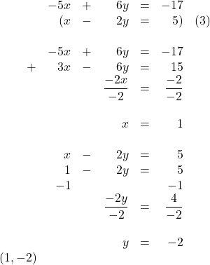 &(-6x&-&5y&=&-3)&(2) \\ \\