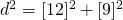 \(d^2 = [6 - (-6)]^2 + [5 - (-4)]^2\)