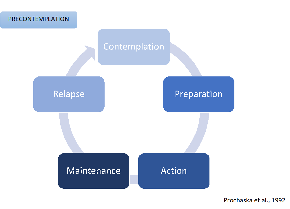 - Precontemplation (Not yet acknowledging that there is a problem behaviour that needs to be changed)